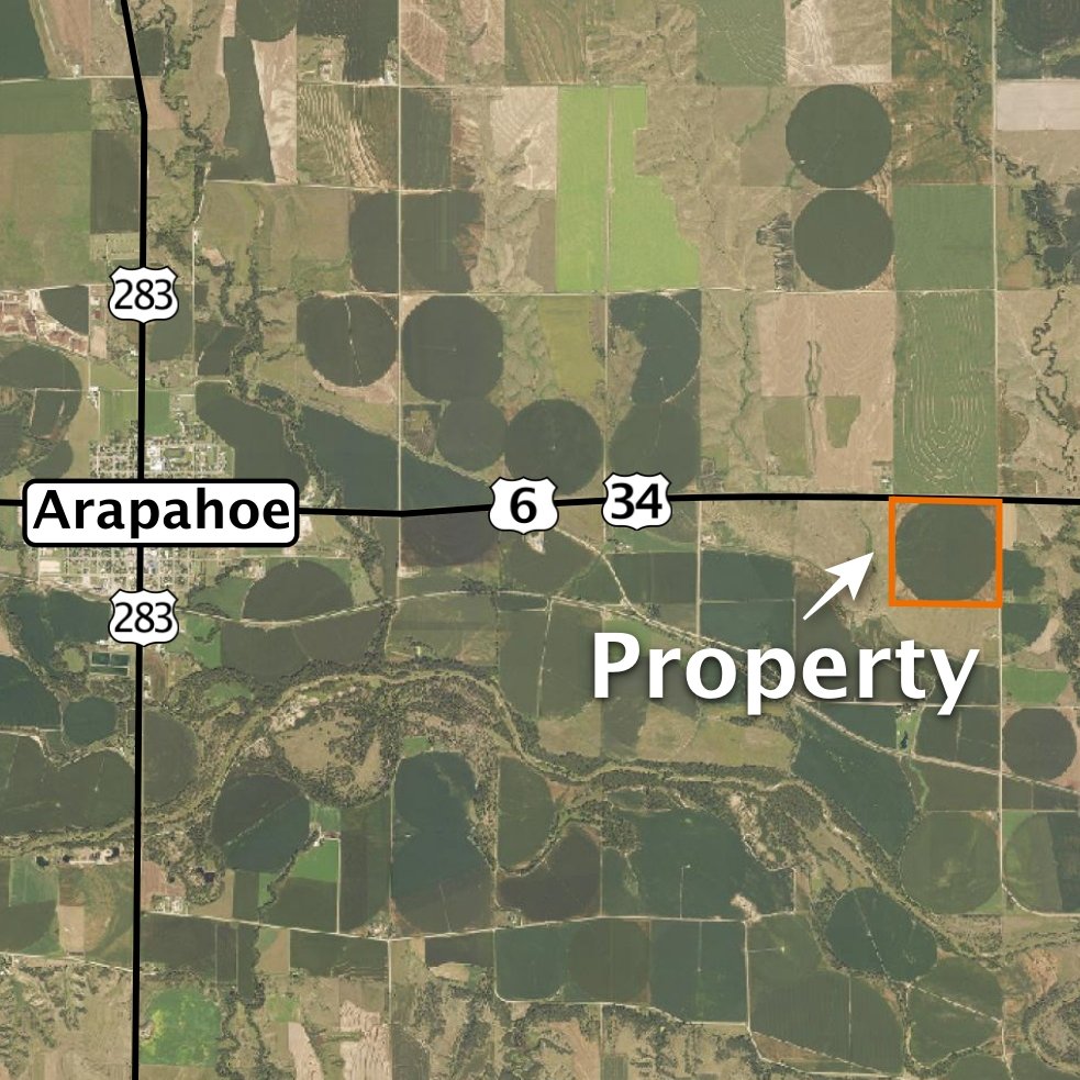East of Arapahoe, Nebraska. From the east edge of Arapahoe, 3 miles east on Highway 6 & 34.