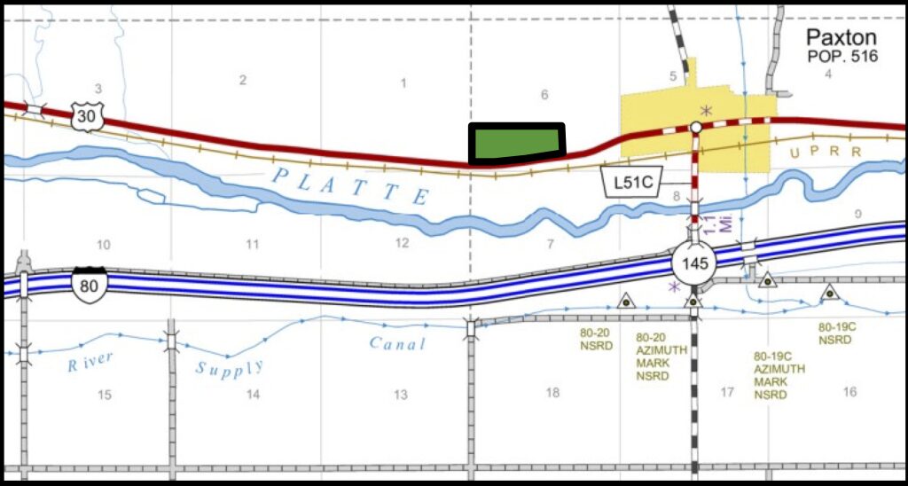 64.9 Acres, more or less, according to Keith County Assessor’s records. This productive Keith County farm offers gravity-irrigated cropland with excellent potential for pivot irrigation. Mostly Class 2 soils. The property is well-suited for row crop production and is well located with easy access from Paxton.