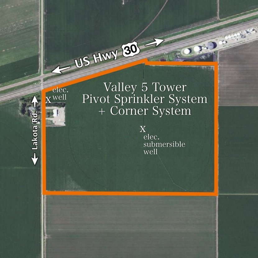 109.5 Acres, more or less, according to Buffalo County Assessor’s records. Highly productive pivot irrigated cropland including a Valley 5 tower pivot equipped with swing arm, elec. submersible irrigation well at the center point, an additional irrigation well with 20HP electric motor located north of the building site and approx. 930ft. of 10″ plastic gated pipe. Includes a 50ft. by 100ft. steel frame metal building with concrete floor, a 35ft. by 80ft. wood frame building with concrete floor and a submersible well.