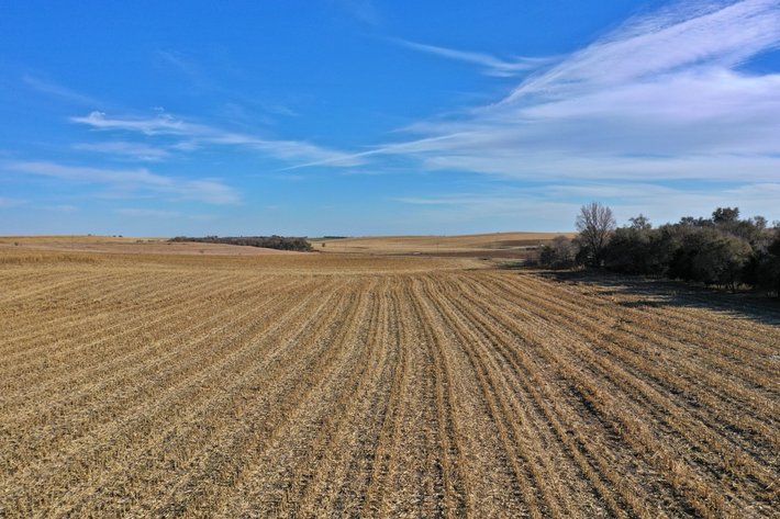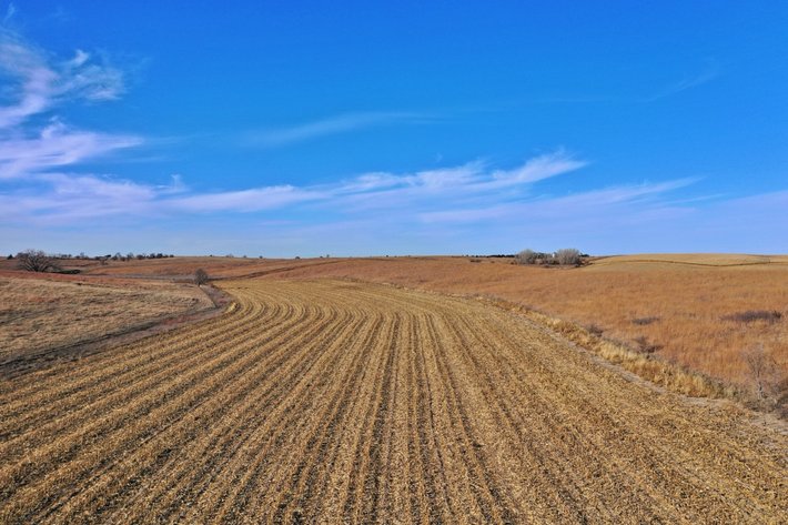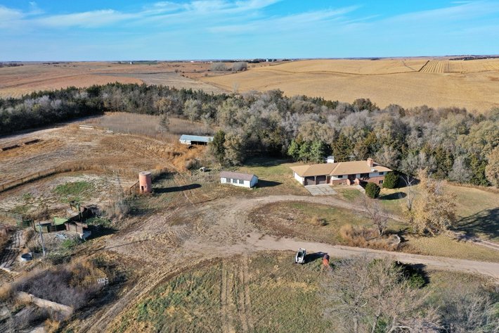 160 Acres, more or less, according to Buffalo County Assessor’s records. Approx. 82.8 acres of cropland, approx. 13 acres in CRP, the remainder grassland and building site. The building site includes a 4 bedroom home built in 1985, main floor utility room, living room with brick fireplace, walkout lower level, nat. gas furnace, central air and two car attached garage. Butler 36ft. by 80ft. steel frame bldg. w/concrete floor, grain bins including 25,000bu., 2 – 15,000bu. w/drying floors and a 5,000bu. Livestock facilities: Pens with approx. 420ft. of concrete fence line bunks & aprons, cattle processing facilities, open front livestock shed, plus other sheds and an electric submersible well new in 2024. A well established building site with good natural shelter. (Owned by tenant – not included: yellow Baasch panels except in SW corral, 1000 gal. fuel tank, sweep augers, machinery & equipment)