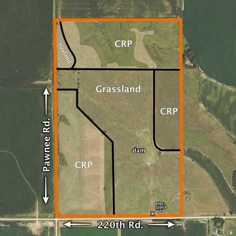 230.7 Acres, more or less, according to Buffalo County Assessor’s records. Approx. 128 acres in the Conservation Reserve Program, approx. 5 acres hayland, the remainder grassland. Water for livestock provided by an electric stock well and a dam.
