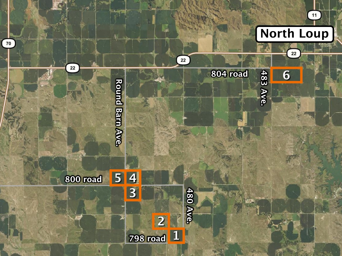 Location: Corner of 800 rd. and Round Barn ave. From North Loup 7 miles west on Hwy. 22 and 4 miles south on Round Barn ave. From Arcadia, 11 miles east.