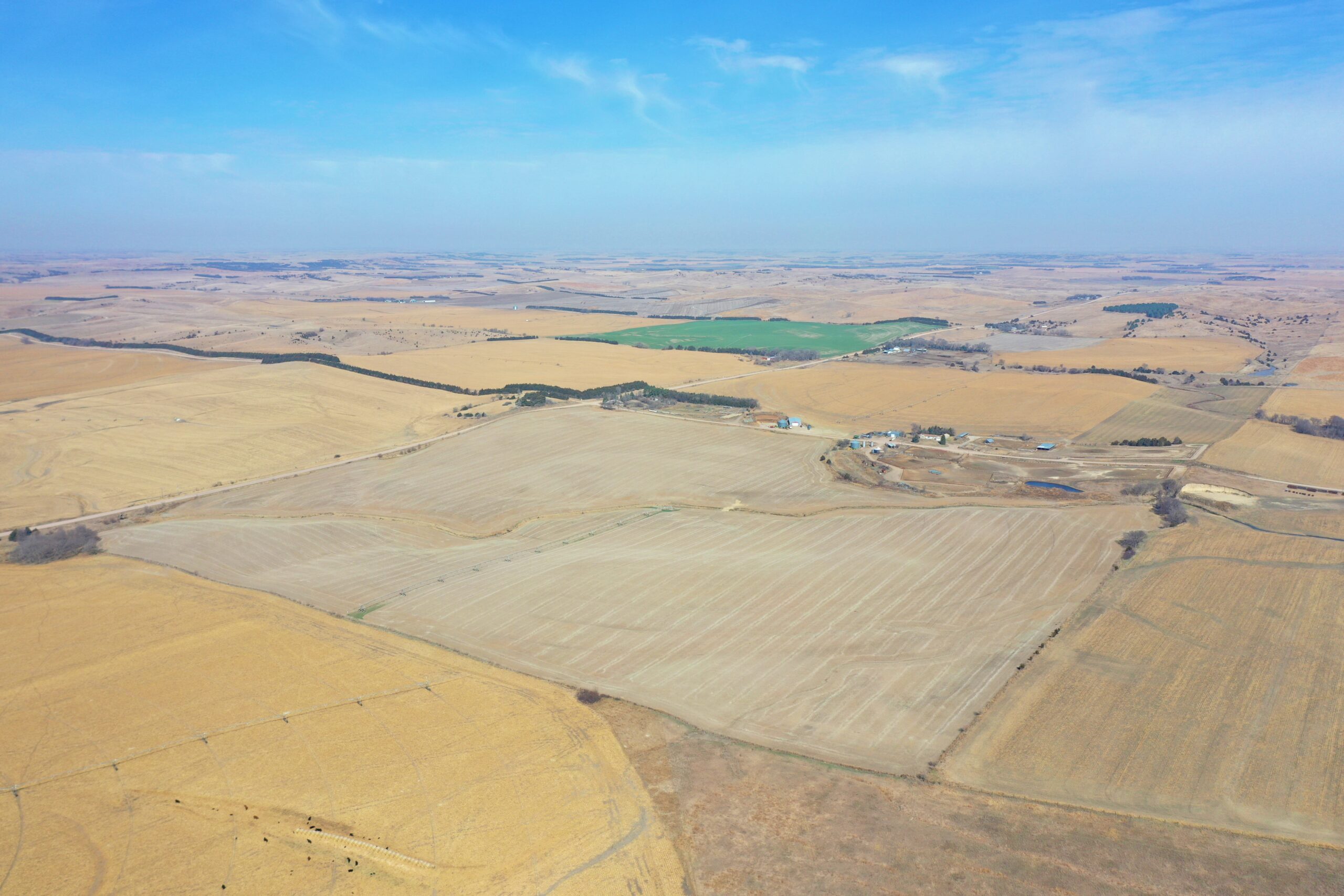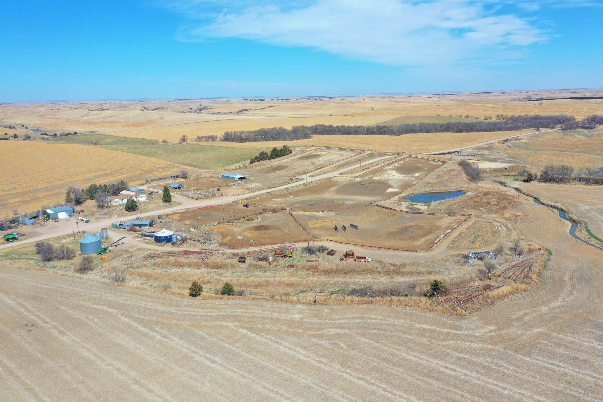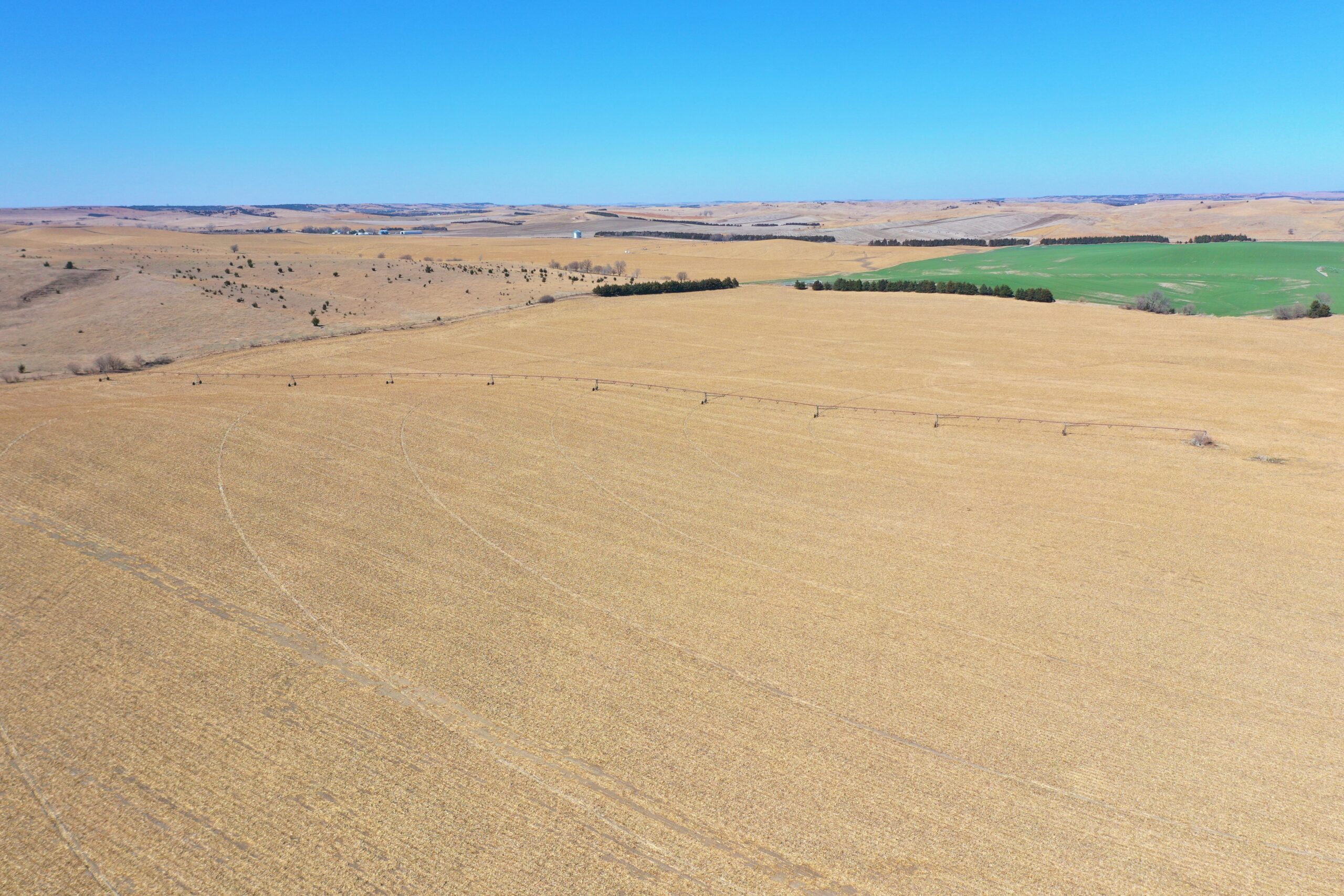 About the Land: 160 Acres, more or less, according to Valley County Assessor’s records. Pivot irrigated cropland with a 4 bedroom/2 bath ranch style home, indoor pool and attached garage and electric submersible well. Also includes an approx. 5,700 sq. ft. steel building, Chief 20,000 bu. Grain bin and older house in the southwest corner. Note: Does not have an irrigation well – in the past water was provided by the well on Tract 3. Not included – livestock fences, panels, gates, pivot system, discharge auger, sweep auger, fans & drying floor in the bin. Additions to what is Not Included: Feed (bales and silage), 5 wire barb-wire fence, continuous panels, wind break panels, calving sheds, equipment (tractors, loaders, etc.), shop items, bin fans, bin door, aeration floor and power sweep and unload auger, liquid pump and tank, pump in domestic well, guard rail, cattle panels, water tanks and stock tanks, load out chute, free standing panels, pivot bridges, feed bunks, diesel irrigation motors and fuel tanks, gates, fuel tanks, 9 tower Zimmatic pivot and control boxes.