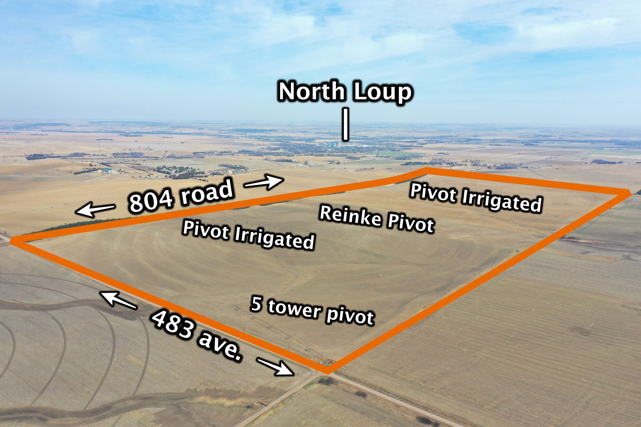 About the Land: 160 Acres, more or less, according to Valley County Assessor’s records. Pivot irrigated cropland including a Reinke 10 tower pivot system, an irrigation well and an electric stock well. Not included – irrigation well motor, geared, generator and control box. Additions to what is Not Included: Electricity pole (Loup Valley rural public power), submersible well, tire tank, pivot tower boxes, pivot tires, Cummins diesel motor and gearhead and generator, cattle panels, fuel tanks, pivot control panel.
