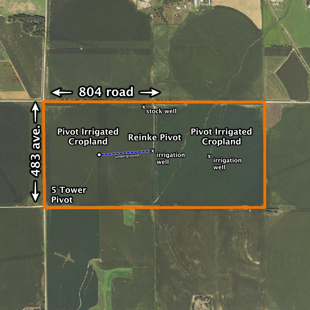 About the Land: 160 Acres, more or less, according to Valley County Assessor’s records. Pivot irrigated cropland including a Reinke 10 tower pivot system (new approx. 2011), electric irrigation well, Chief 17,000 bu. Grain bin and electric submersible well. Not included – cattle lot fences, guard rail, continuous panels, gates, irrigation well motor, pump & panel, discharge auger in the bin. Additions to what is Not Included: Discharge auger on bin, electric irrigation motor and pump panel, pivot control panels, irrigation values, 5 wire barb-wire fence, equipment (tractors, box scraper, etc.), guard rail, water tanks, rubber tire tanks, continuous panels, cattle panels, pump in domestic well, gates, steel wind breaks, Rienke Electrogater 10 tower pivot (disassembled), pivot bridges, feed bunks